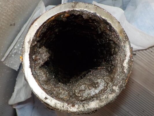 まず始めに管の中のサビや汚れを研磨と高圧洗浄で除去します。